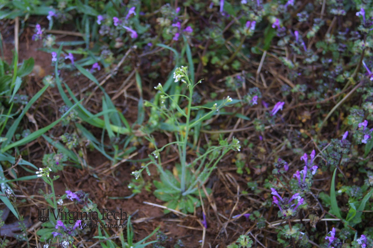 Wavy to deeply lobed leaves, white flowers, and triangular shaped pods with a notch on top are characteristic of this plant. Shepard's purse serves as a home to several fungi that attack cole crops i.e. turnip, and cabbage. This species is also host to a large number of viral diseases including: tobacco mosaic virus, beet yellow, cabbage black ring spot, cabbage ring necrosis, beet mosaic, beet ring spot, aster yellows, beet curly top, beet mosaic, cauliflower mosaic, cucumber mosaic, and radish mosaic.