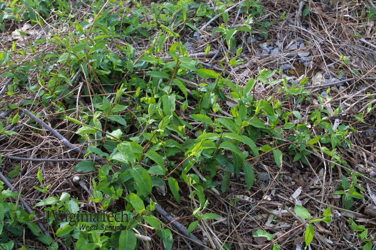 Evergreen or semi-evergreen woody vine that sprouts from woody rhizomes and persistent brown vines in the spring. Plants are an exotic invasive species that overwhelms native flora in many sites.