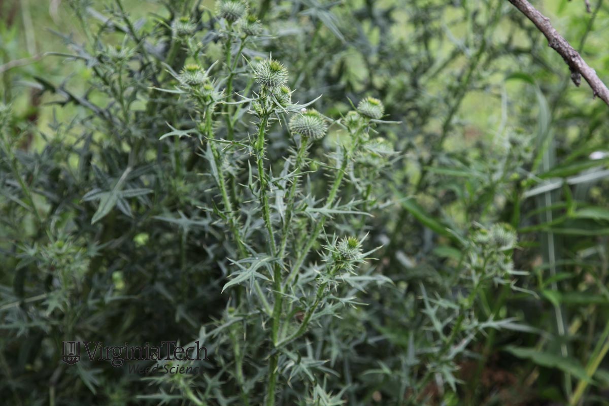 This species is marked by spiny, winged stems. Overall, it is similar to musk thistle but typically differs in having smaller leaves and flowers and has an erect, winged peduncle.