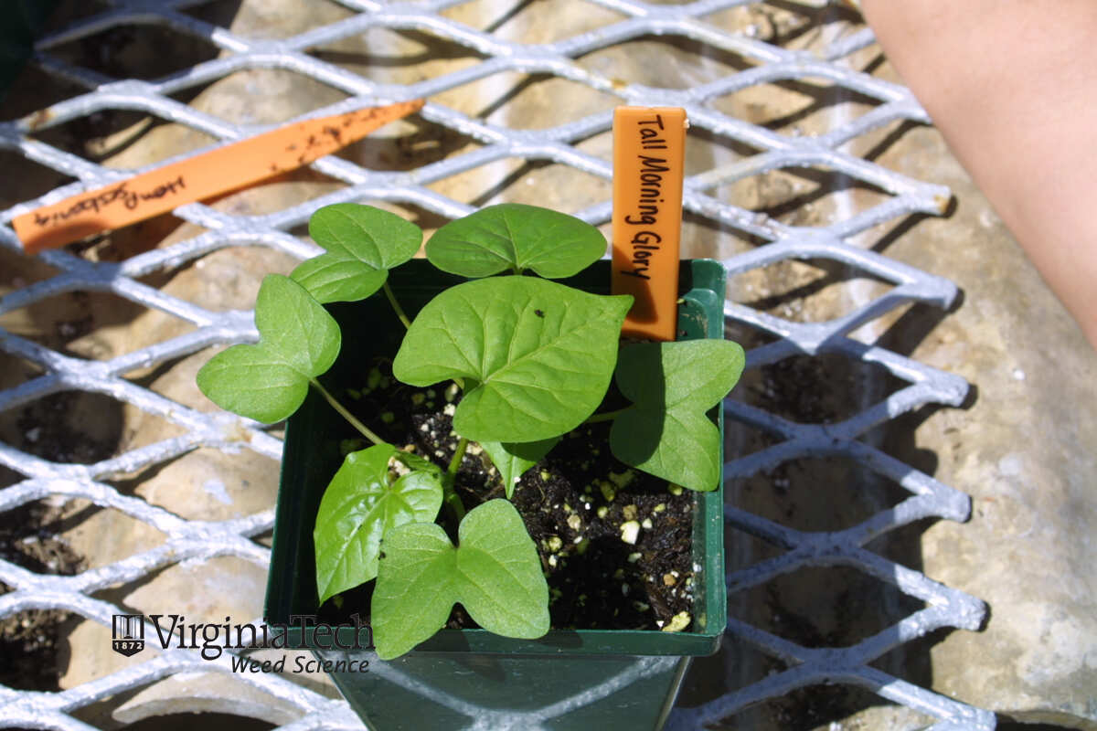 This plant can be identified by the way that its heart-shaped leaves generally overlap one another. Another key feature is its multi-hued purple/white flowers. The cotyledons are often more square than ivy/entireleaf morning-glory.