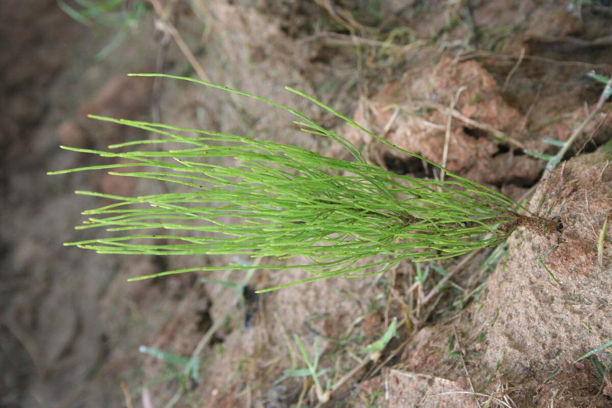 Field horsetail is a common weed of landscapes, orchards, and nursery crops. It grows on many different soils but does particularly well on sandy soils, on neutral or slightly basic soils, and in areas where the water table is high and soil drainage is poor. It is also found in low meadows, pastures, small fruit crops, roadsides, woodlands, and embankments. Field horsetail is resistant to most herbicides used in agriculture.