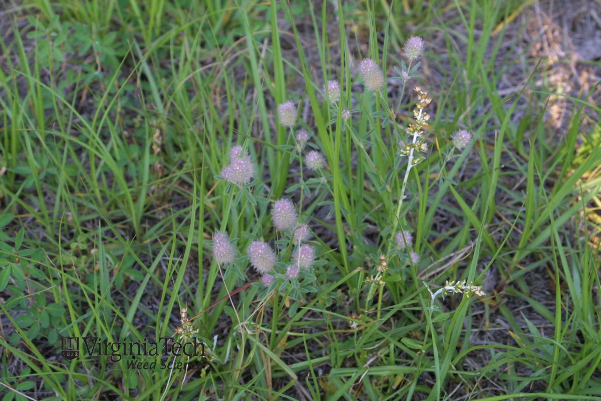 Flowers are usually grayish in color, although they occasionally occur from a light pink to a light purple. The flowers form silky cylinder-shaped heads, thus resembling a rabbit's foot.